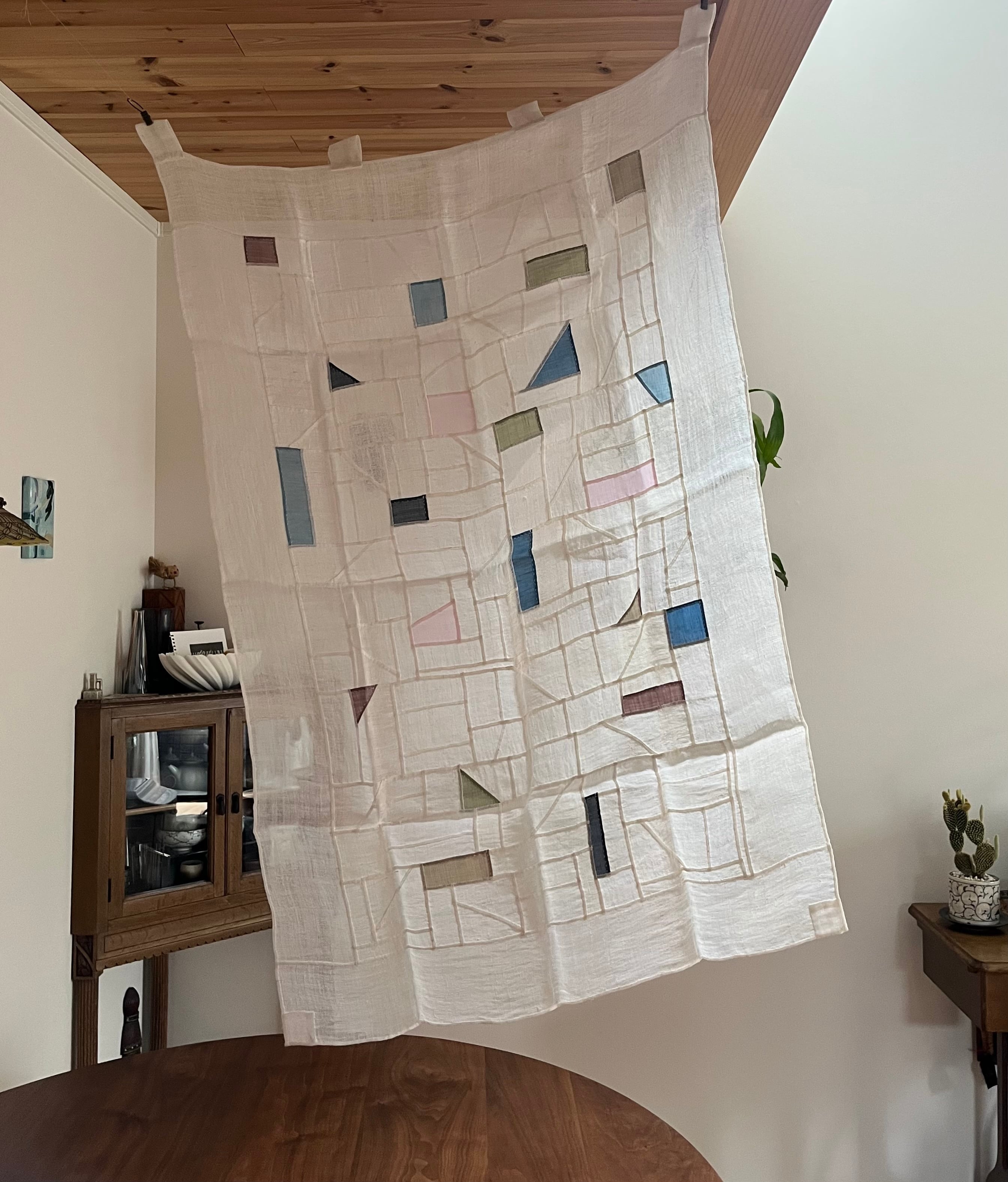 窓に掛けたりつるしたり、何かにふわっと掛けたりして、美しい表情を楽しんでいただけます。