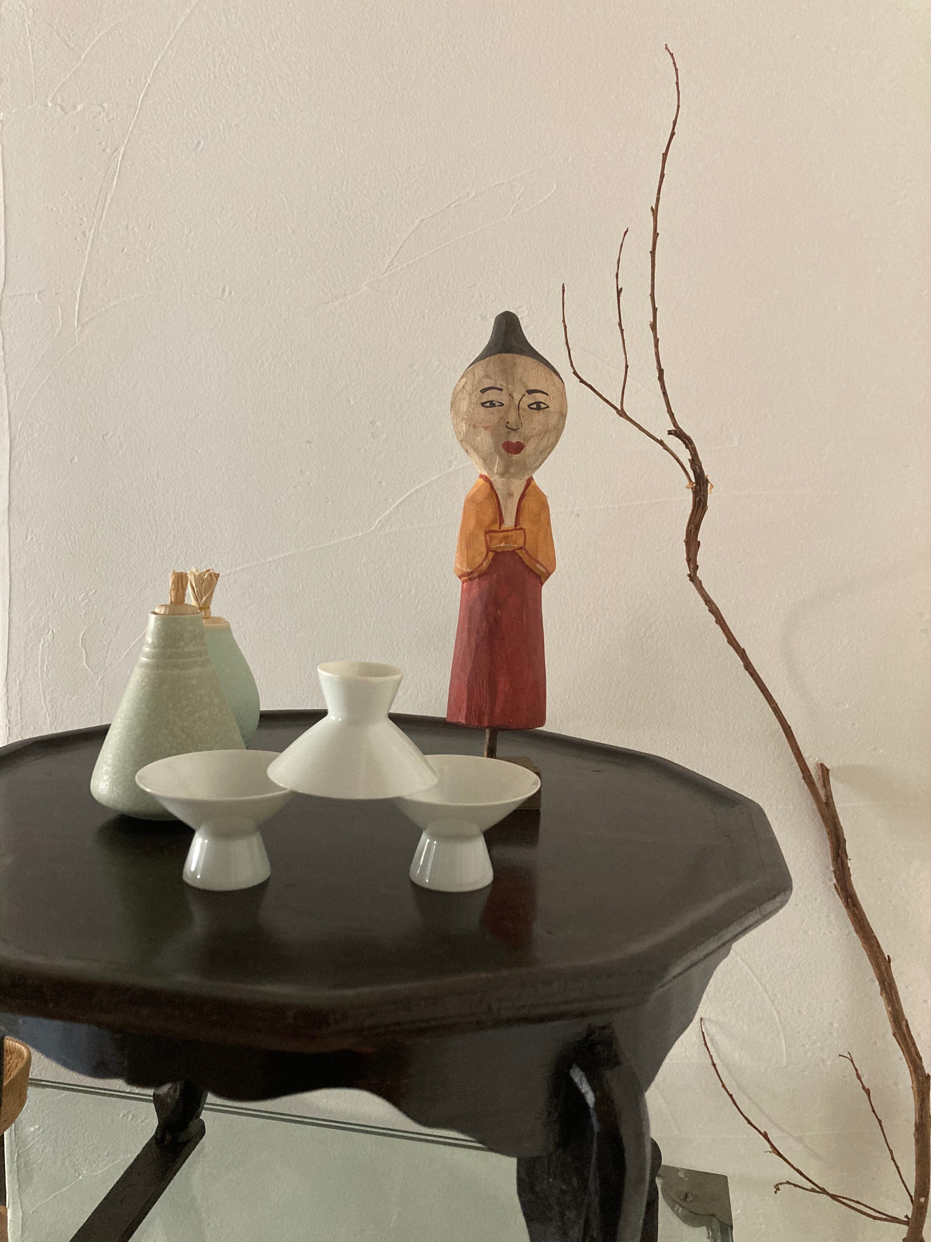 李朝の時代、亡くなったひとを乗せる輿を飾った木彫りの人形です。