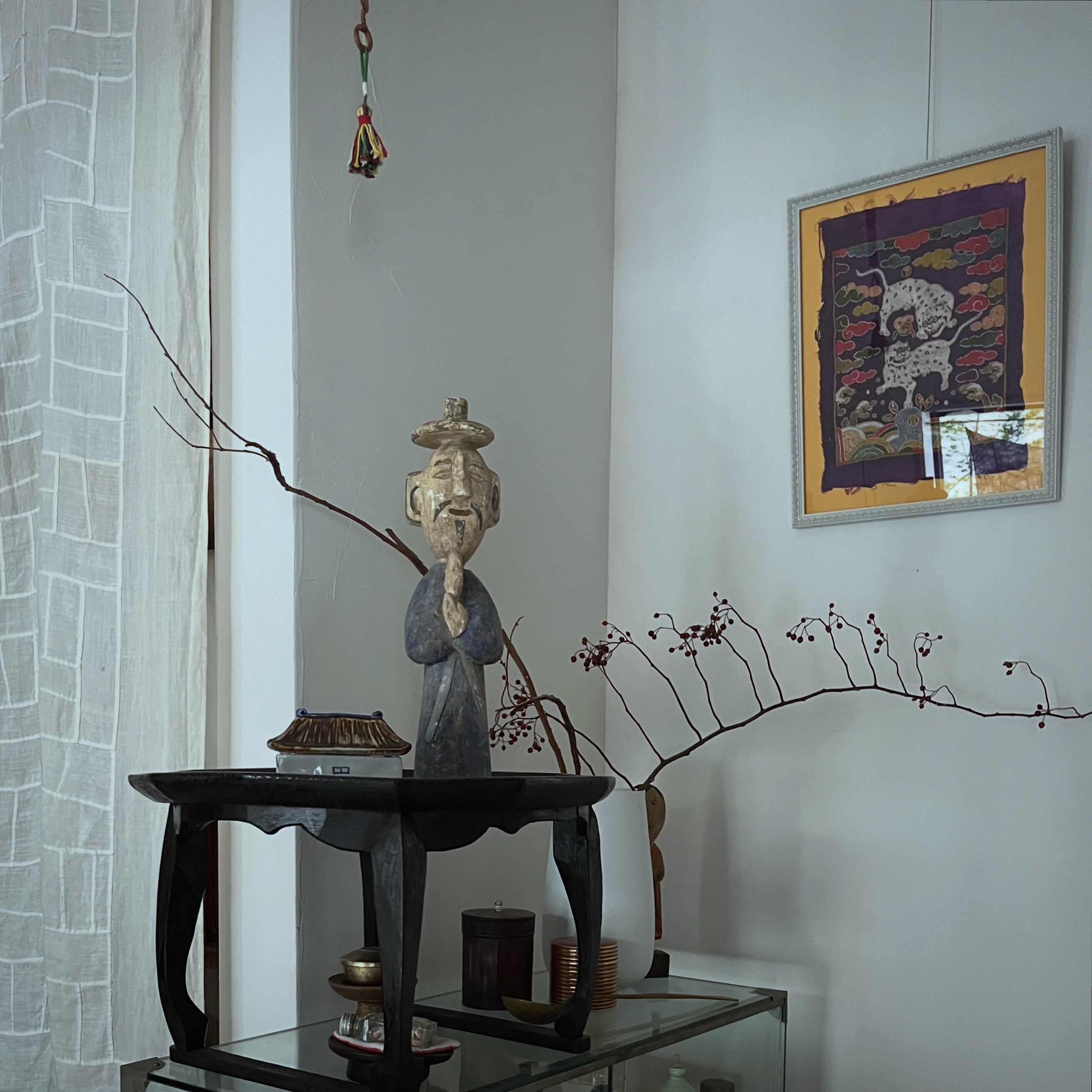 李朝の時代、亡くなったひとを乗せる輿を飾った木彫りの人形です。